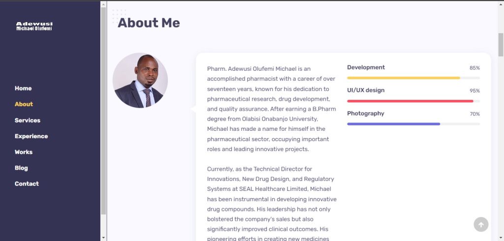 Pharm. Adewusi Olufemi Michael is an accomplished pharmacist with a career of over seventeen years, known for his dedication to pharmaceutical research, drug development, and quality assurance. After earning a B.Pharm degree from Olabisi Onabanjo University, Michael has made a name for himself in the pharmaceutical sector, occupying important roles and leading innovative projects.